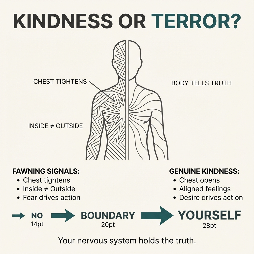 The difference between genuine kindness and fawning lives in your body. Your nervous system knows the truth even when your mind tells you otherwise. I learned to read these signals after years of performing kindness while my insides screamed.